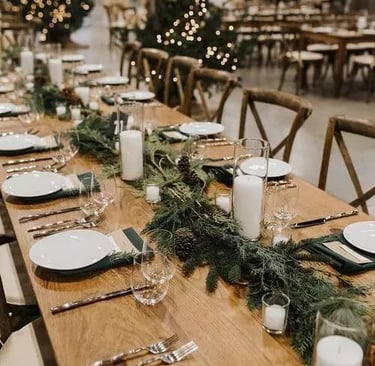 Nous sommes ravis de vous accueillir prochainement pour célébrer notre mariage dans une ambiance un peu magique : un Noël revisité, sans rouge ni bleu foncé ! On vous invite donc à privilégier toutes les belles teintes pastel, les dorés, les beiges, les verts clairs... bref, une palette douce et lumineuse. Évidemment, la mariée gardera le blanc pour elle afin que les photos soient encore plus harmonieuses.